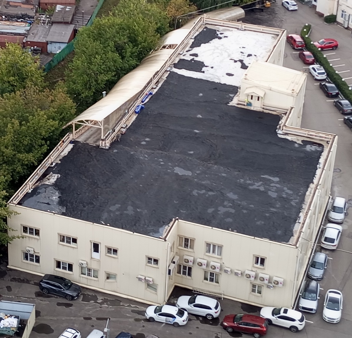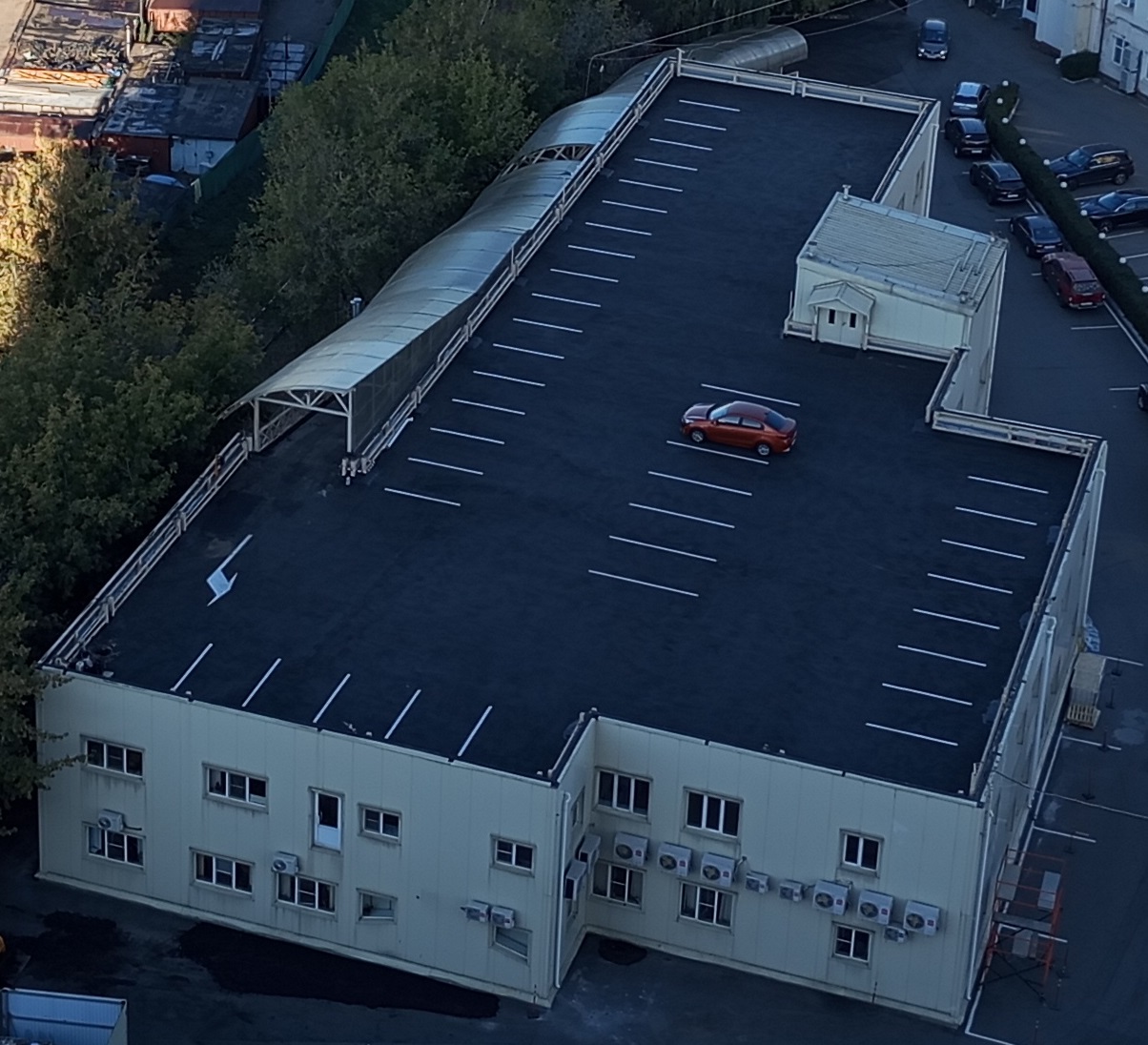 Пример организации автомобильной парковки на крыше офисного здания в Москве